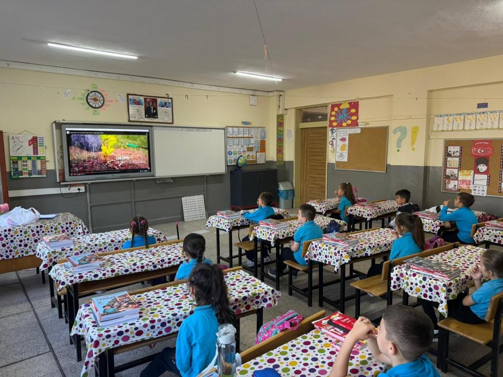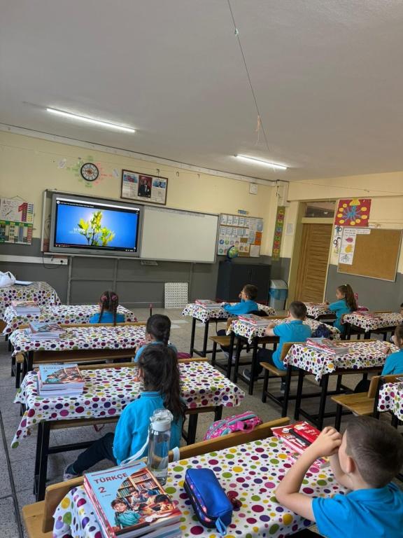 "Yeşil Vatan! Benim Okulum Geleceğe Çare" etkinlikleri kapsamında öğrencilerimize okulların açıldığı ilk gün, ilk derste EBA'dan yayınlanan, "Her Çocuk Bir Fidan" kısa film izlettirildi.